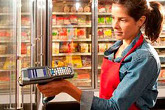 В розничной и оптовой торговле применяются самоклеящиеся этикетки и термоэтикетки для автоматизированных систем учета, наклейки и стикеры для рекламных акций, этикетки и термоэтикетки для весов и термопринтеров, самоклеящиеся этикетки-пломбы. Для автоматизированного оперативного учета товарного запаса в торговых сетях не обойтись без использования портативных компьютеров и терминалов сбора данных, сканеров штрихкода и прочего оборудования для идентификации и штрихкодирования. Автоматизация магазина – эффективное средство, позволяющее контролировать и управлять процессом товарооборота, как в отдельном магазине, так и комплексно в целой торговой сети.